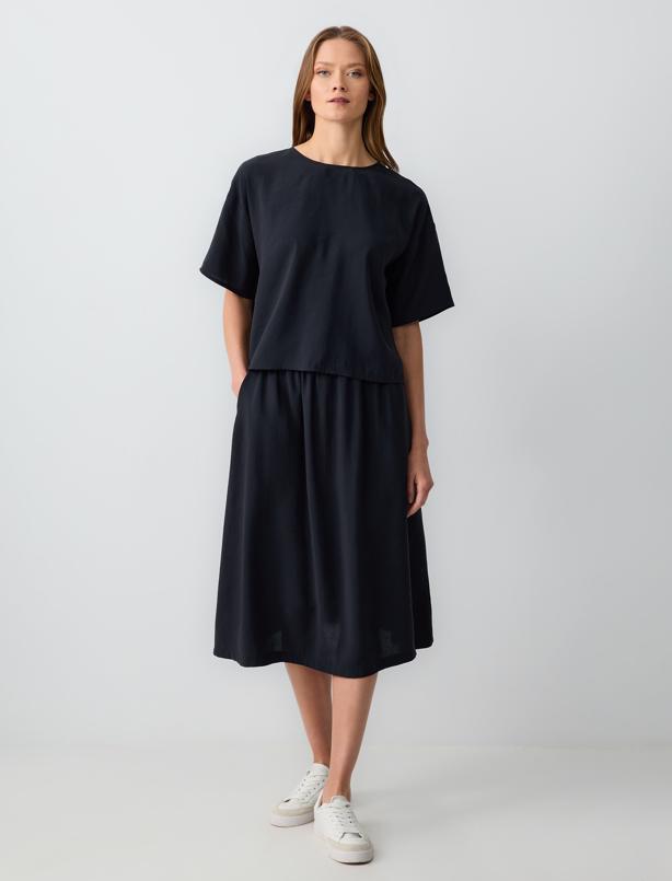 Siyah Rahat Kesim Kısa Kollu Yuvarlak Yaka Modal Dokuma Bluz