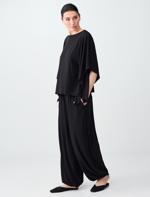 • Bayan Siyah Rahat Kesim Lastikli Paça Normal Bel Örme Pantolon