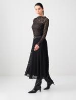 Siyah Rahat Kesim Normal Bel Dantelli Örme Midi Etek