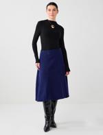 • Bayan Lacivert Rahat Kesim Normal Bel Dokuma Midi Etek