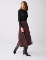 Kahverengi Rahat Kesim Normal Bel Yırtmaçlı Midi Örme Etek
