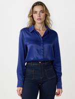 • Bayan Yağ Yeşili Rahat Kesim Uzun Kollu Saten Gömlek