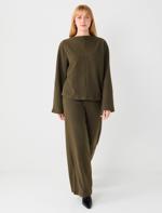 Haki Rahat Kesim Yumuşak Dokulu Bol Paça Örme Pantolon
