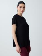 • Bayan Siyah Rahat Kesim Yuvarlak Yaka Düşük Omuz Örme Bluz