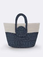 • Bayan Lacivert Renk Bloklu Hasır Çanta