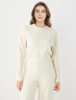 • Bayan Bej Saç Örgü Desenli Bisiklet Yaka Örme Sweatshirt