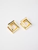 • Bayan Sarı Sarmal Kare Figürlü Küpe