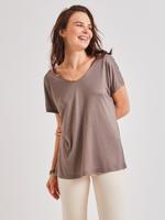 • Bayan Vizon Sırt Detaylı Geniş Yaka Tişört
