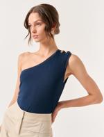 Lacivert Tek Omuz Detaylı Örme Bluz