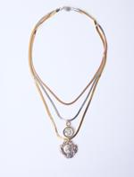 • Bayan Sarı Üçlü İtalyan Zincirli Etnik Desenli Kolye