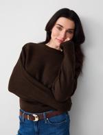 • Bayan Kahverengi Uzun Kollu Bisiklet Yaka Triko Kazak