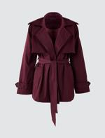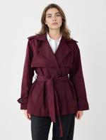 • Bayan Bordo Uzun Kollu Ceket Yaka Kemer Detaylı Trençkot
