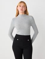 Antrasit Uzun Kollu Dik Yaka Yumuşak Dokulu Bluz