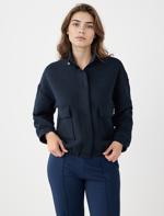 • Bayan Lacivert Uzun Kollu Fermuarlı Beli Lastikli Örme Ceket