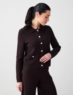 • Bayan Kahverengi Uzun Kollu Gömlek Yaka Düğme Detaylı Triko Hırka