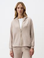 • Bayan Bej Melanj Uzun Kollu Kapüşonlu Örme Polar Hırka