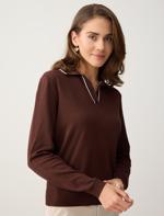 • Bayan Kahverengi Uzun Kollu Polo Yaka Triko Bluz