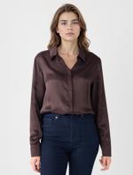 • Bayan Kahverengi Uzun Kollu Rahat Kesim Saten Gömlek