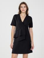 • Bayan Siyah V Yaka Dirsek Kol Örme Mini Elbise