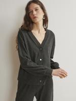 • Bayan Antrasit V Yaka Düğme Detaylı Ceket