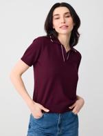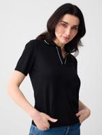 • Bayan Siyah V Yaka Kısa Kollu Çizgi Detaylı Triko Bluz