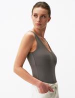 • Bayan Gri V Yaka Kolsuz Basic Bluz