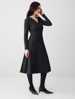 • Bayan Antrasit Melanj V Yaka Yumuşak Dokulu Örme Midi Elbise