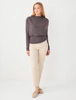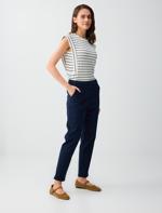 • Bayan Bej Yandan Cepli Yüksek Bel Normal Paça Dokuma Pantolon
