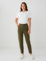 Haki Yandan Cepli Yüksek Bel Normal Paça Dokuma Pantolon
