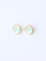 Yeşil Yaprak Desenli Mine Detaylı Oval Küpe