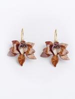 Kahverengi Yaprak Detaylı Çiçek Desenli Küpe