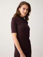 • Bayan Kahverengi Yarım Balıkçı Yaka Kısa Kollu Desenli Örme Bluz