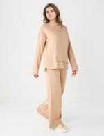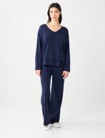• Bayan Lacivert Yüksek Bel Bol Paça Beli Lastikli Triko Pantolon