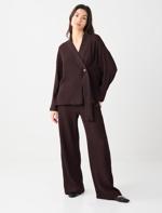 • Bayan Kahverengi Yüksek Bel Bol Paça Desenli Çizgili Örme Pantolon