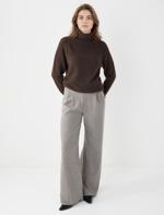 • Bayan Antrasit Melanj Yüksek Bel Bol Paça Yumuşak Dokulu Örme Pantolon