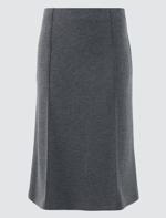 • Bayan Antrasit Melanj Yüksek Bel Düz Kesim Midi Örme Etek