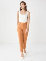 • Bayan Kahverengi Yüksek Bel Normal Paça Dokuma Pantolon