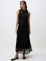 • Bayan Siyah Yüksek Bel Rahat Kesim Dantel Detaylı Midi Etek