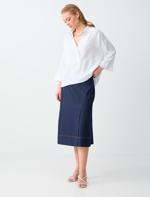 • Bayan Mavi Yüksek Bel Rahat Kesim Midi Dokuma Etek