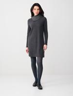 • Bayan Antrasit Melanj Yumuşak Dokulu Asimetrik Yaka Örme Mini Elbise