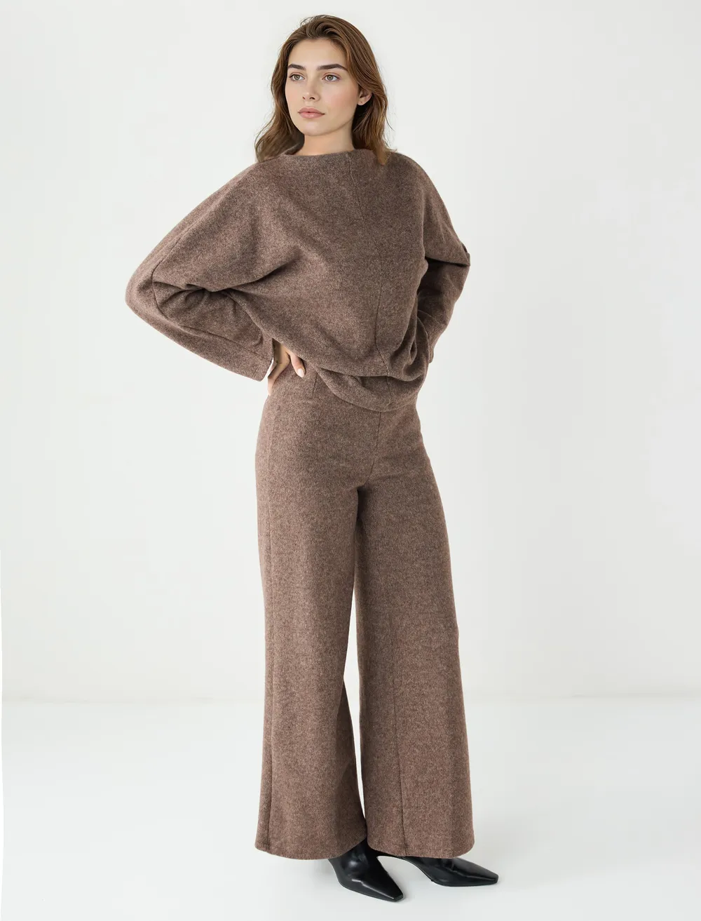 Rahat Kesim Yumuşak Dokulu Bol Paça Örme Pantolon