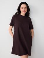 • Bayan Kahverengi Yumuşak Dokulu Omzu Düğme Detaylı Örme Mini Elbise