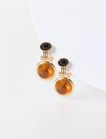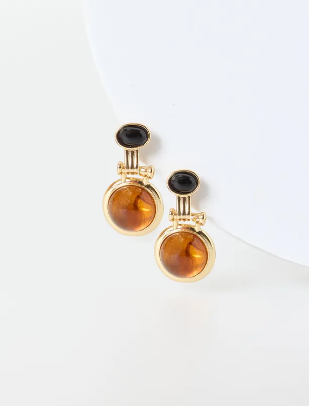 Kahverengi Yuvarlak Taş Detaylı Sallantılı Küpe