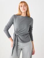 Antrasit Yuvarlak Yaka Beli Bağcık Detaylı Örme Bluz