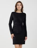 • Bayan Siyah Yuvarlak Yaka Büzgü Detaylı Örme Mini Elbise