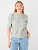 Gri Yuvarlak Yaka Dirsek Kol İnci İşlemeli Triko Kazak