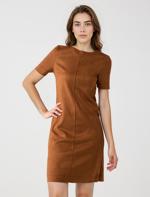 • Bayan Kahverengi Yuvarlak Yaka Kısa Kollu Süet Örme Elbise