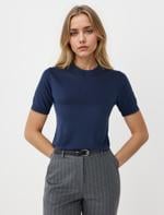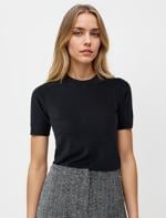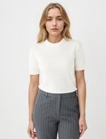 Yuvarlak yaka detayı ve kısa kollu formuyla modern bir görünüm sunan bu triko kazak, yün karışımlı dokusuyla yumuşak ve konforlu bir his verir. Desenli tasarımı sayesinde kombinlere dinamik ve özgün bir hava katar.