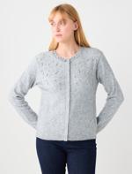 • Bayan Gri Yuvarlak Yaka Parlak Taş Detaylı Triko Hırka