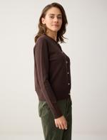 • Bayan Kahverengi Yuvarlak Yaka Uzun Kollu Düğme Detaylı Triko Hırka